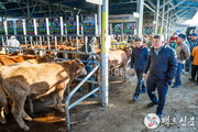[팩트신문 = 이상혁 기자] 예천군(군수 김학동)은 9일 경매가 진행 중인 예천가축경매시장에서 한우 가격 동향과 경매시장 운영 실태 등을 현장점검했다. 이날 가축시장에는 비육우 79두, 번식우 38두, 송아지 202두 총 319두의 가축이 거래되며 활발한 경매가 이뤄졌다. 특히 현장에서는 최근 한우 가격 흐름과 함께 경매 진행 과정, 농가 이용 실태 등에 대한 점검이 함께 진행됐다. 예천가축경매시장은 스마트 경매 시스템과 무인 개량 시스템을 도입해 경매의 투명성과 효율성을 높이고 축산 농가의 이용 편의성도 지속적으로 개선하고 있다. 김학동 군수는 "최근 한우 가격 상승으로 축산 농가들의 시름을 조금이나마 덜어 다행스럽게 생각한다”며, “어려운 시기에도 묵묵히 건뎌주신 농가 분들과 가축시장을 운영해주신 관계자 여러분께 깊은 위로와 감사의 말씀을 드린다"고 말했다. 예천군은 환율 상승에 따른 사료비 인상으로 농가 부담이 가중되고 있는 만큼, 조사료 생산시설 확충 등 사료비 절감 대책을 적극 추진하는 한편, 예천한우 브랜드 명품화와 대외 시장 개방에 대비한 경쟁력 강화에도 총력을 기울이고 있다.
