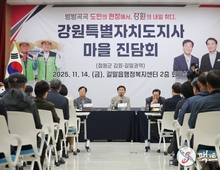 [팩트신문 = 이상혁 기자] 김진태 강원특별자치도지사는 「강원특별법」 군사특례를 활용한 첫 권한 행사로 지난 3월 군사규제 개선 성과를 거둔 철원군을 11월 14일 (금) 방문해 도지사 ‘마을진담회’(진솔한 +간담회)의 네 번째 자리를 마련했다. 이번 진담회는 주민과의 소통을 강화하고, 현장의 의견을 보다 폭넓게 듣기 위해 철원군을 김화·갈말권역과 철원·동송권역의 두 개 권역으로 나누어 진행했다. 이날 행사에는 김진태 지사를 비롯해, 한기호 국회의원(춘천, 철원, 화천, 양구을), 이현종 철원군수, 김정수·엄기호 도의원, 이장, 주민자치위원, 노인회 등 각계각층의 주민 300여 명이 참석해 뜨거운 관심 속에 진담회가 시작되었다. 이현종 철원군수는 “이번 방문은 지사님께서 철원을 아끼고 주민의 애로사항을 듣고 신속히 반영하고자 하는 마음의 표현”이라고 말했다. 이어 “철원군은 군사규제 100만평 완화, 농업진흥지역 3만 4천 평 해제 등 규제 개선의 가시적 성과를 이뤄냈다”고 설명했다. 또한, “수돗물 하수처리시설 개선을 위해 도비 약 60~70억 원을 지원받아 추진 중이며, 신철원과 와수 지역은 그동안 여건상 시행하지 못했던 LPG 배관망 사업도 이번에 본격적으로 추진되면 주민들이 훨씬 편리하게 난방시설을 이용할 수 있을 것”이라고 전했다. 한기호 국회의원은 “오늘 제 고향에서 주민 여러분의 말씀을 직접 들을 수 있어 뜻깊다”며, “잘 경청해 정책에 반영해야 할 사안이 있다면 의견들을 적극 반영하겠다”고 밝혔다. 김진태 도지사는 “오늘 철원으로 오면서 환영 현수막이 많이 걸린 것을 보고 뭉클하면서도 죄송스러운 마음이 들었다”며, “특히 국회의원이 처음부터 참석하는 경우가 흔치 않은데 한기호님께 깊이 감사드린다”고 말했다. 이어, “철원은 18개 시군중에 가장 일을 잘하는 곳”이라며, “농촌활력촉진지구 9개 지구 중에 철원이 두 군데나 된다”며, “오늘 말씀해주시는 이야기들 잘 듣고 반영하겠다”고 밝혔다. 이어진 소통 시간에는 주민들의 다양한 건의와 질의가 이어졌다. ▲SOC(도로, 철도), ▲농지 및 군사규제 완화, ▲관광 활성화, ▲생활불편사항 등으로 권역별로 1시간이 넘는 활발한 질의응답이 진행되었다. 이외에도 바쁜 일정 속에서도 건강비법과 애정하는 철원 음식을 묻는 질문에 김진태 지사는 “매일 아침 뛰거나 걷는 등 운동을 즐기고 있다”고 전하며, “철원에서 먹으면 다 맛있고 특히 매운탕도 좋아한다”고 말했다.