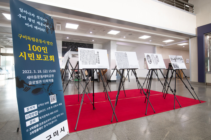 전시는 오는 3월 17일(목)까지 진행되며 3월 18일(금)에는 「구미독립운동사 발간 100인 시민보고회」 행사장에서 전시회를 진행한다. 또한, 시민들과 함께 추억을 공유할 수 있는 시민포토존도 함께 운영할 예정이다.