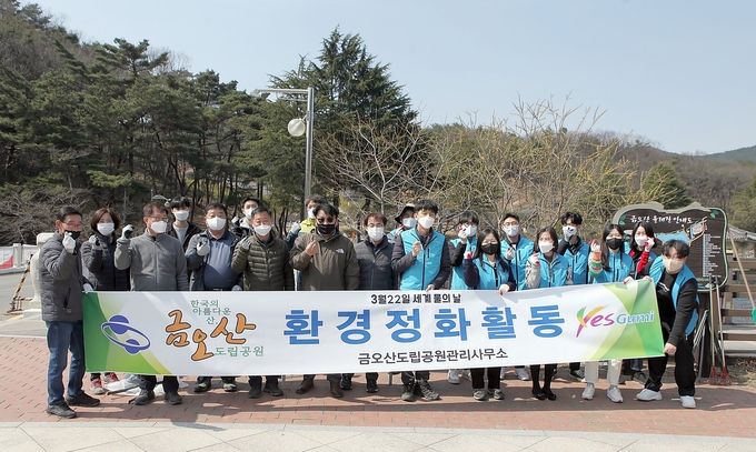 구미시(금오산도립공원관리사무소)는 제30회 『2022년 세계 물의 날』을 맞아 3월 22일(화) 13시부터 공원관리사무소 직원 및 환경관리원 20명과 한국농어촌공사 직원 10여명이 금오천의 발원지인 대혜폭포와 금오저수지 등에 대하여 대대적인 환경정화 활동을 펼친다.