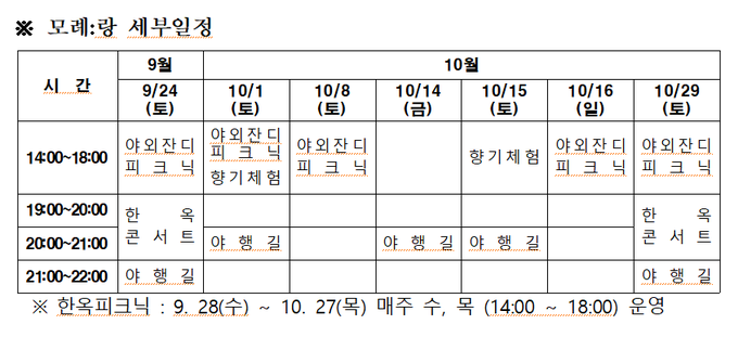 이와 더불어 모례장자가 마을길 가이드로 변신하여 신라불교초전지의 유래를 알려주고, 모례마을의 은은한 야간 정취도 느낄 수 있도록 마을 야행길을 걸어보는 체험인 “야행길 프로그램(물결이랑)”을 운영한다. 마지막으로 향기가 모랑모락 피어나는 콘셉트를 바탕으로 향 관련 제품(비누 및 향수)을 만드는 체험으로 바구니 가득 담아갈 수 있는 “향기체험프로그램(바구니랑)”을 운영하는 등 다채로운 프로그램들이 준비되어 있다.