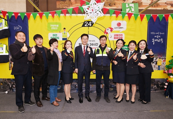 구미교육지원청은 구미학생안전자원봉사자회, 구미학생선도단 구미녹색어머니연합회 등 3개 단체와 함께 24시간 학생들을 안전하게 지키겠다는 마음으로‘함께하는 24시간 안전릴레이’를 주제로 체험 부스를 운영했다.