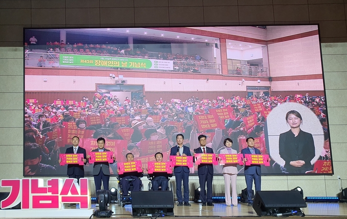 구미시(시장 김장호)는 4. 25.(화) 14:00 장애인체육관에서 구미시장애인단체협의회(회장 박우수) 주관으로 장애인복지 단체장 및 장애인복지 유공자 등 1,000여명이 참석한 가운데「제43회 장애인의 날 기념식」을 개최했다.