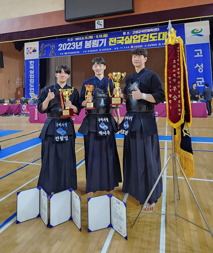 구미시청 운동선수단 검도팀(감독 이강호)은 15일부터 4일간 고성국민체육관에서 열린「2023년 봉림기 전국실업검도대회」에서 3단부 최호진(남, 23세) 우승, 전철영(남, 22세) 준우승, 5단부 박시우(남, 30세) 3위의 우수한 성적을 거뒀다.