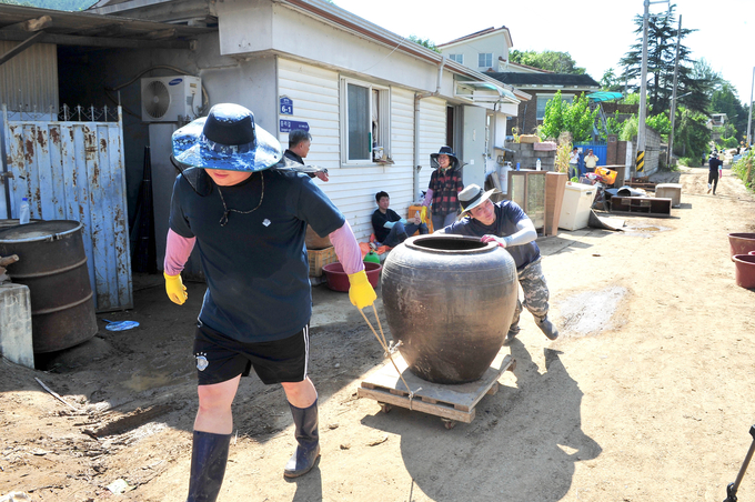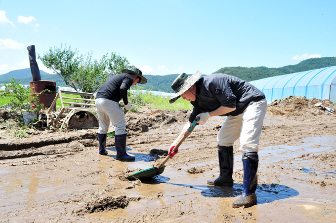 이에 군은 피해발생 직후인 지난 11일부터 피해가 집중된 효령면과 부계면 일대에 군청 공무원 800여명(연인원)을 투입하여 주택 및 농경지 토사 제거, 침수 가구 폐기, 파손 비닐하우스 정비, 각종 집기 세척 등 피해 주민들의 빠른 일상복귀를 위해 주말에도 지원을 이어갔으며, 일부 직원은 복구작업 중 벌에 쏘여 응급치료를 받은 후에 다시 복구작업에 투입되기도 했다. 군은 복구인력 투입을 이번 주말까지 이어갈 예정이다.