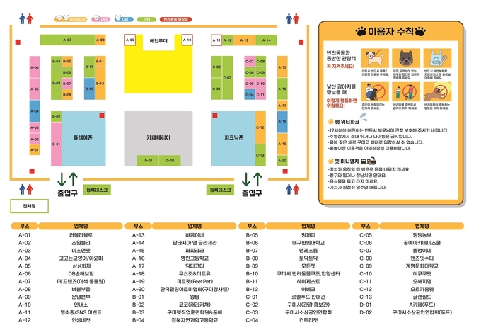 행사장에는 약 50개의 반려동물 산업용품 업체가 입점하며, 참가자들은 의류, 간식, 액세서리 등 다양한 상품을 저렴하게 구매할 수 있다. 매일 오후 3시에는 영수증 이벤트를 실시해 50명씩 추첨, 다양한 경품도 증정한다.