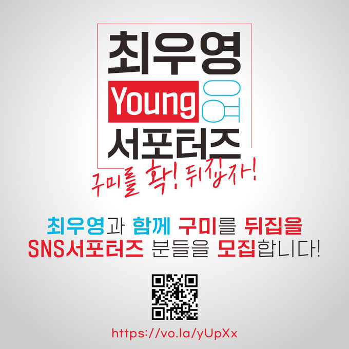 최우영 국민의힘 구미을 국회의원 예비후보가 15일(금), 온라인 선거운동에 누구나 참여할 수 있는 ‘영(O) 서포터즈’모집을 시작했다.