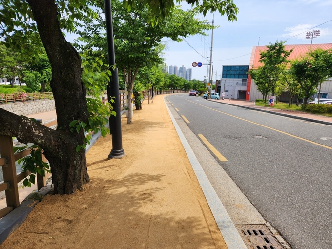 해당 구간은 토사 유실 등으로 노면 상태가 좋지 않아 유모차 및 휠체어의 통행이 어려운 상황이었고, 시는 기존 흙과 자갈 등을 걷어내고 맨발 산책이 가능할 정도의 흙을 깔아 노면을 정비했다.
