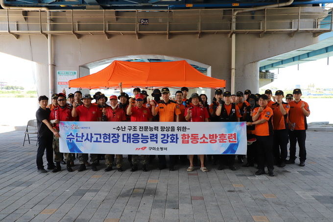 구미소방서는 14일 구미대교(낙동강)에서 수난사고 발생 시 현장대원들의 대응능력 강화를 위한 수난사고현장 합동소방훈련을 실시했다고 밝혔다.