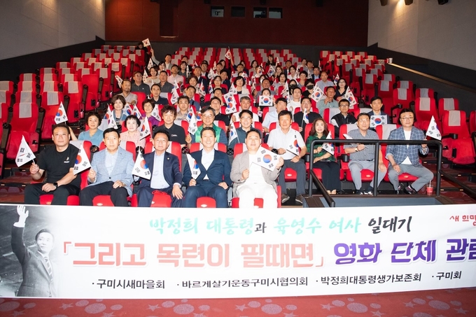 김장호 구미시장은 지난 15일 광복절을 맞이하여 구미 원평동 소재 CGV 구미점에서 공직자, 새마을 관련 단체 회원 등 60여 명과 함께 영화 ‘그리고 목련이 필때면’을 관람했다.