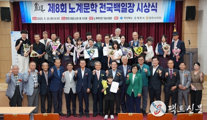 영천시는 노계박인로기념사업회가 주최·주관하고 영천시가 후원한 ‘2025년 제8회 노계문학전국백일장 시상식’이 30일 시립도서관 지산홀에서 성황리에 열렸다고 밝혔다.