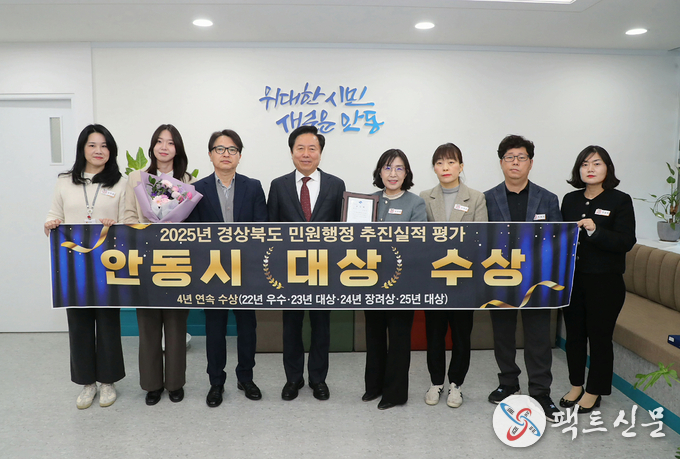 이러한 노력의 결과 안동시는 ‘2025년 경상북도 민원행정 추진실적 평가’에서 대상을 받아 2022년부터 4년 연속 수상이라는 성과를 거뒀으며, 2025년 정부혁신 우수부서 “장려상”도 수상했다.