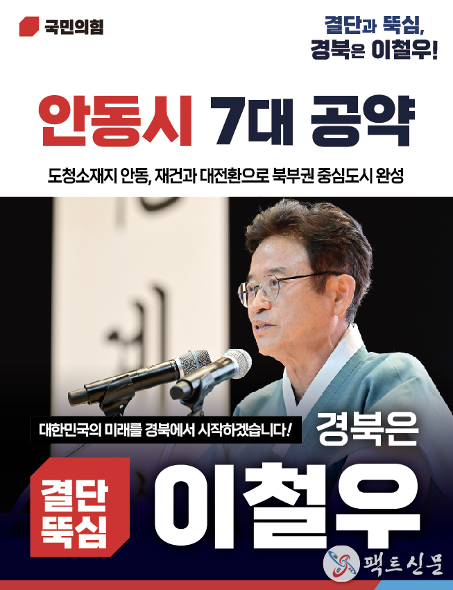 이 후보는 “안동은 단순한 지방 도시가 아니라 대한민국의 정신과 정체성을 상징하는 도시”라며 “이제는 재건을 넘어 산업과 관광, 삶이 함께 도약하는 새로운 모델을 만들어야 할 때”라고 강조했다.