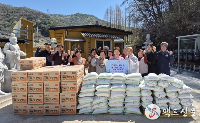 4월 8일, 해민사(회주 김경란)는 부처님 오신 날을 맞아 관내 취약계층을 돕기 위한 쌀(10kg) 100포와 라면 50박스(500만원 상당)를 성주군 가천면행정복지센터에 기탁했다.