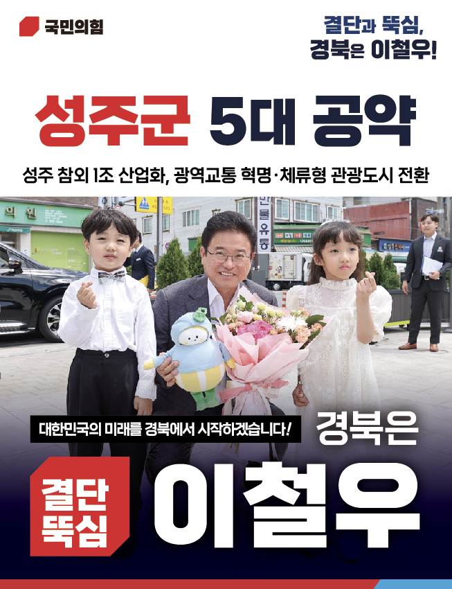 이철우 국민의힘 경상북도지사 예비후보는 성주군을 대한민국 대표 농식품 산업거점이자 대구권 핵심 성장도시로 육성하기 위한 5대 공약을 발표했다.