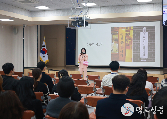 이날 교육은 친절 교육 전문 강사를 초빙해 진행되었으며, ▲공감 능력 향상 ▲적극적인 소통 기술 ▲민원응대 갈등 관리 ▲실제 민원 사례 중심의 대응 전략 등 실무에 바로 적용할 수 있는 내용 중심으로 진행되었다.
