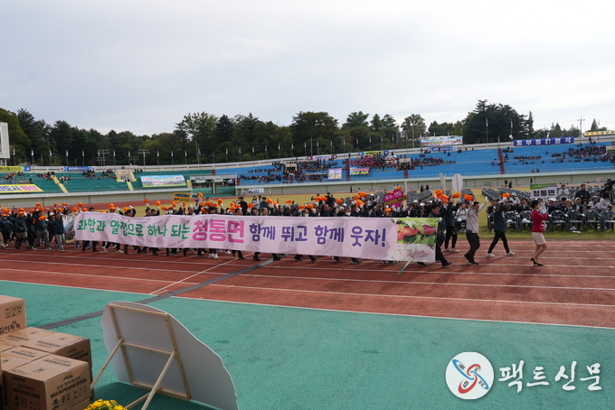 행사는 식전공연으로 영천아리랑보존회의 아리랑 공연을 시작으로, M댄스팀의 댄스 무대와 트로트 가수 김초이의 축하공연이 이어지며 분위기를 한껏 달궜다. 이어 오전 10시부터 열린 개회식에서는 각 읍면동을 대표하는 800여 명의 선수단이 육군3사관학교 군악대의 힘찬 연주와 맞춰 입장하며 대회의 막을 올렸다.
