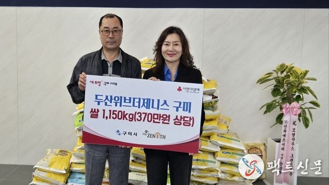 기탁된 쌀은 두산위브더제니스 구미의 모델하우스 오픈을 기념해 화환 대신 받은 것으로, 지역의 어려운 이웃에게 전달하고자 하는 뜻을 담아 구미시에 전달됐다. 시는 이를 저소득 취약가구와 사회복지시설에 배부할 계획이다.