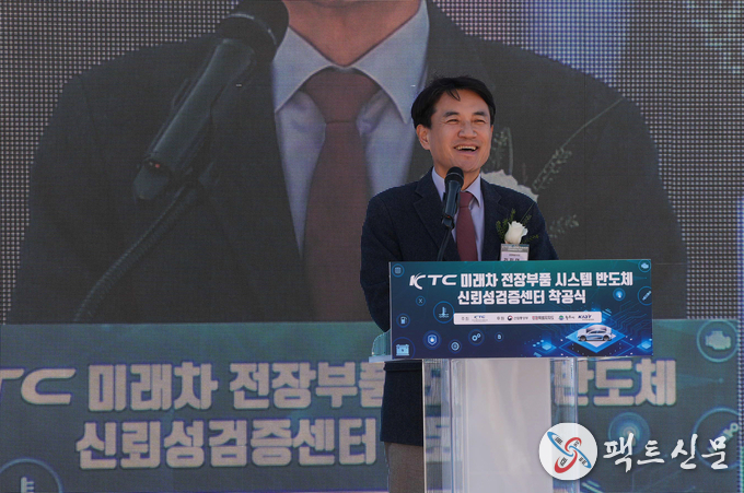 김진태 강원특별자치도지사는 “반도체 교육원에 이어 오늘 미래차 신뢰성 검증센터가 착공되며 강원도의 반도체 산업사가 새롭게 써지고 있다”고 강조했다. 이어 “오늘은 미래차와 시스템 반도체가 만난 날로 테슬라와 삼성전자가 만난 것과 같은 상징적 의미가 있다”며, “앞으로 말보다 행동으로 결과를 보여드리겠다”고 밝혔다.