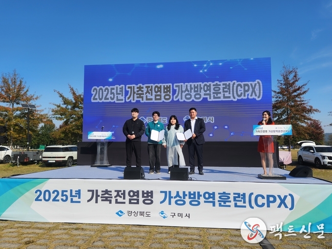 구미시는 지난 4일 낙동강체육공원에서 경상북도, 축협, 생산자단체 등 관계기관이 참여한 가운데 구제역 발생 대비를 위한 가상방역훈련(CPX)을 실시했다. 이번 가상방역훈련은 구제역 발생 시 신속한 초동 대응능력을 배양하고 방역기관 간 유기적인 협력체계를 강화하기 위해 마련됐다.