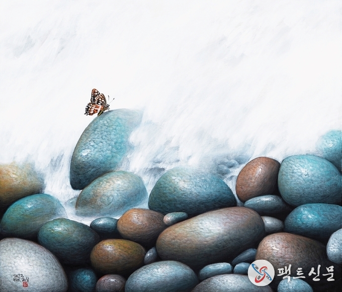 초대작가 남학호 화백은 46년간 돌(石)이라는 하나의 소재에 천착해, 보석 같은 영속성을 캔버스에 표현해냈다. 오랜 풍화에도 의연한 돌과 세월을 초월하며 내려앉은 나비의 모습에는 자연과 사물에 대한 작가의 통찰과 영감이 스며있다.