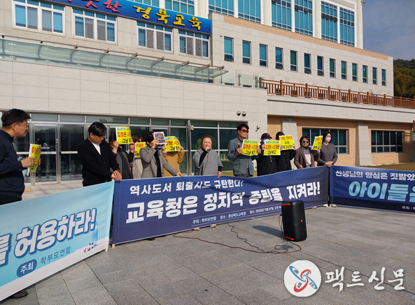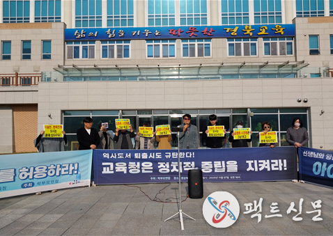 ‘바른 교육과 학교 자율을 지지하는 시민단체 및 학부모연합’은 7일 오전 10시 경상북도교육청 청사 앞에서 기자회견을 열고, 해당 조치는 헌법과 교육기본법이 규정한 교육의 정치적 중립 의무를 정면으로 위반한 것이라고 주장했다.