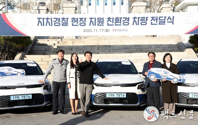 강원특별자치도(도지사 김진태)는 11월 17일(월) 도청 광장에서 자치경찰의 현장 대응 강화를 위해 업무용 차량 7대 전달식을 개최하였다.
