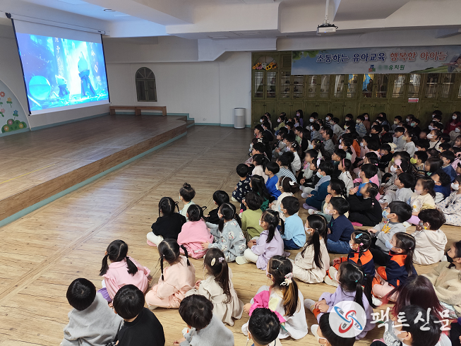 구미도시공사 4단지하수처리팀은 지난 13일 관내 유치원 어린이들을 대상으로 인공지능(AI)을 활용해 자체 제작한 환경동화“리오와 클리니의 물정화 대모험”을 상영하고 환경교육을 진행했다.