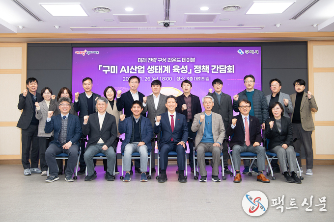 구미시는 26일 퇴근 시간을 훌쩍 넘긴 늦은 시간까지 시청 3층 대회의실에서 「구미 AI 산업 생태계 육성 정책 간담회」를 개최했다.
