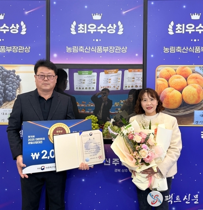 상주시는 지난 11월 27일(수) 개최된 『2025 대한민국 과일산업대전』의 대한민국 대표과일 선발대회에서 화동면에 거주하는 신주섭(58세) 씨가 최우수상을 수상하였다.