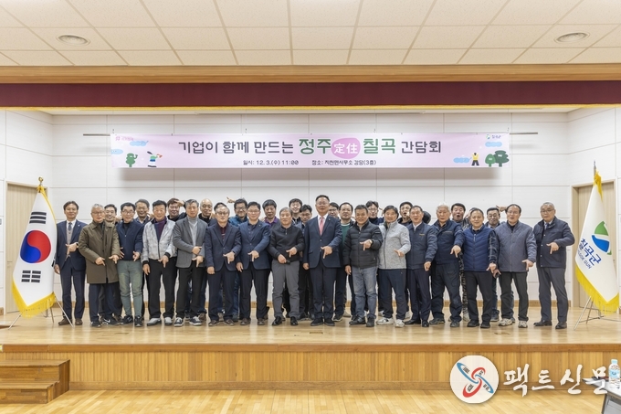 칠곡군은 올해 지역 기업과의 소통 강화를 위해 릴레이 방식으로 추진해 온 “기업과 함께하는 칠곡 정주간담회”의 마지막 일정으로 12월 3일 오전 11시 지천면사무소 강당에서 지천면 소재 기업인협의회 3개 단체(신리공단협의회, 내실공단협의회, 창평공단협의회)와의 간담회를 개최했다. 이날 행사에는 지천면 소재 기업입 30여명이 참석해 지역 정주여건 개선 방안 및 현안을 심도 있게 논의했다.