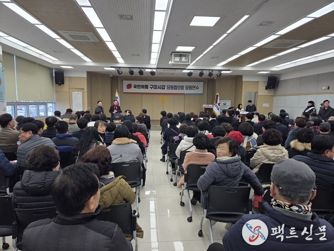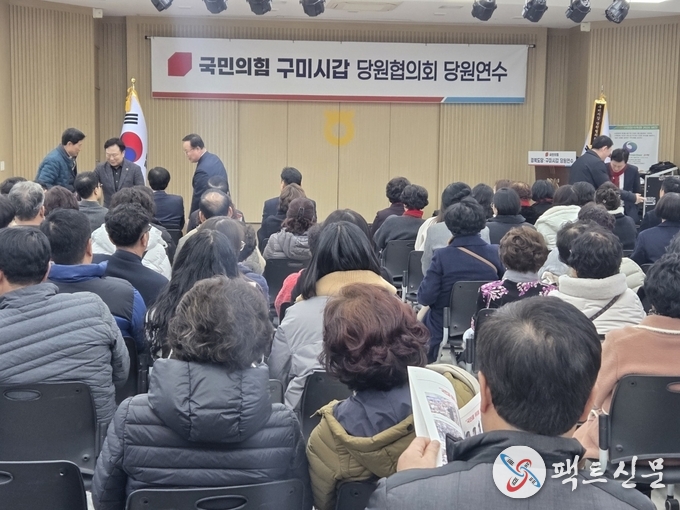 그런데 바로 이 기간에 상상하기 어려운 일이 벌어졌다. 12월 5일 14시, 국민의힘 구미시갑 당원협의회가 당원연수를 개최했고, 회기 중임에도 시의회 의장을 포함한 갑지역 시의원들이 아무렇지 않게 의원 자리를 비우고 당사 행사장으로 향한 것이다.