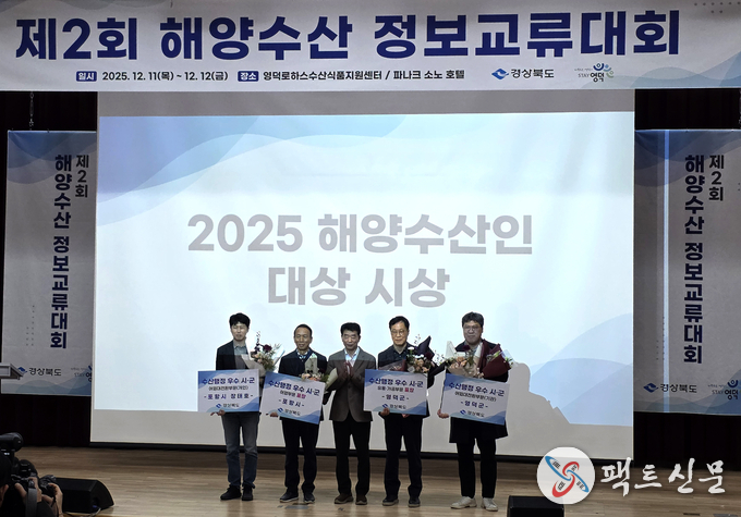 정제훈 해양수산과장은 “이번 수상은 영덕군 수산업 발전을 위해 현장에서 최선을 다해 온 어업인과 수산기업의 노력 덕분”이라며, “앞으로도 수산업 경쟁력 강화, 청년 어업인 육성, 수산식품 산업화 등 수산업 발전에 더욱 노력하겠다”라고 밝혔다.
