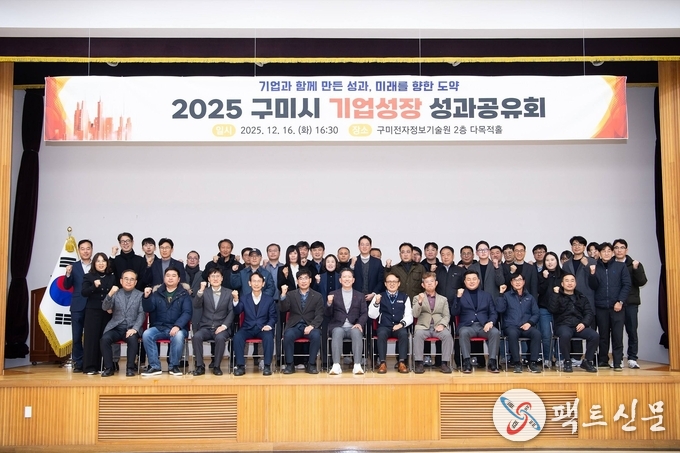 구미시는 지난 16일 구미전자정보기술원 다목적홀에서 2025년 기업지원 정책 추진 성과를 점검하고, 내년도 기업지원 정책 방향을 공유하기 위한 ‘2025 구미시 기업성장 성과공유회’를 개최했다.