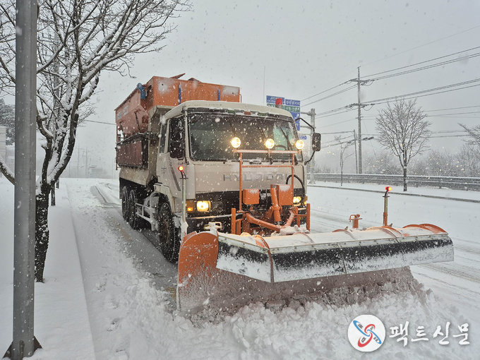 주요 간선도로에 대해서는 건설과를 중심으로 새벽 시간대부터 제설 작업을 실시하고 있으며, 제설 장비 11대와 인력 25명을 투입해 차량 통행에 지장이 없도록 선제적으로 대응하고 있다.