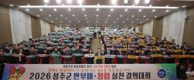 성주군은 1월 22일(목) 군청 대강당에서 공무원 250여 명이 참석한 가운데 ‘2026 청렴실천 결의대회 및 청렴특강’을 개최했다.