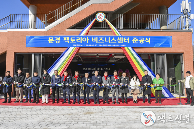 문경시는 지난 27일 산업단지 근로자, 지역 주민 등 150여 명이 참석한 가운데 신기동 신기2일반산업단지 내에 ‘문경 팩토리아 비즈니스센터’를 건립하고 준공식을 개최해 추진 경과보고와 감사패 수여, 준공 세레머니, 시설 관람 순으로 진행됐다.