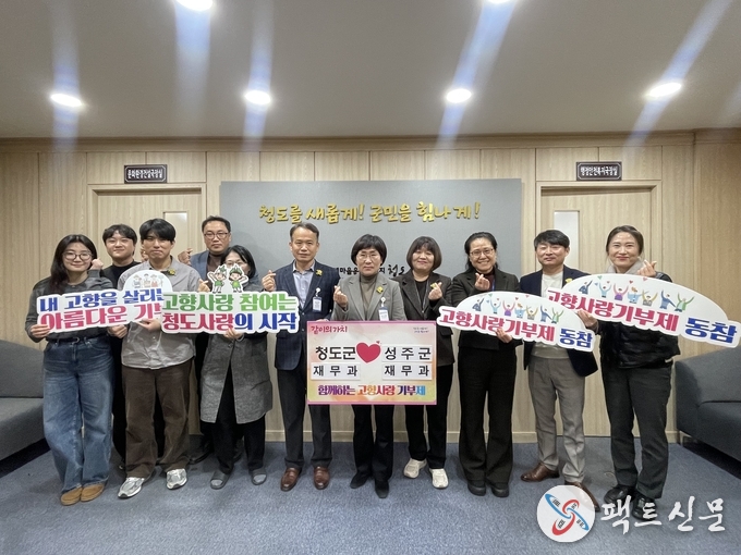 청도군(군수 김하수)은 고향사랑기부제 활성화를 위해 지난 28일 청도군청 재무과 직원들과 성주군청 재무과 직원들이 상호기부에 참여해 총 300만 원을 기부했다고 밝혔다.