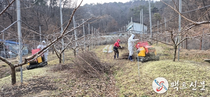 이번 영농부산물 파쇄는 파쇄 희망 농가를 신청받아 산불 감시원의 협조하에 진행됐다. 복숭아, 포도, 한라봉, 들깨, 고춧대 등 총 16 농가의 신청이 접수됐으며, 약 40,000㎡가량의 잔가지를 파쇄했다.