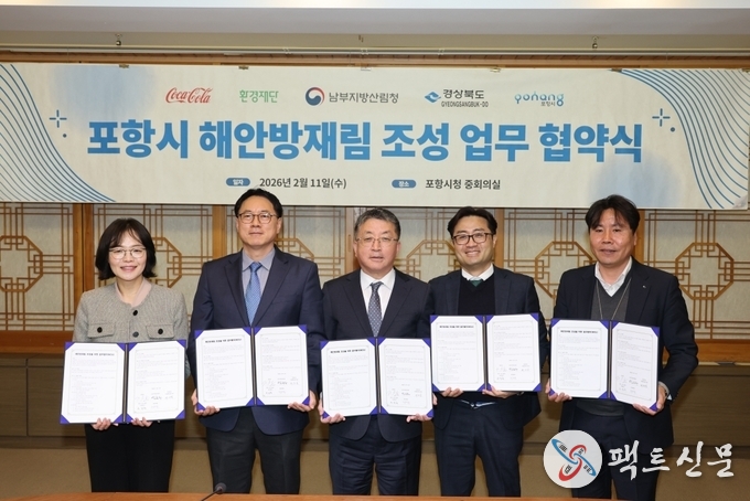 시는 11일 한국 코카-콜라, 환경재단, 남부지방산림청, 경상북도산림환경연구원과 ‘해안방재림 조성사업 업무협약(MOU)’을 체결하고 민·관 협력체계를 공식화했다.