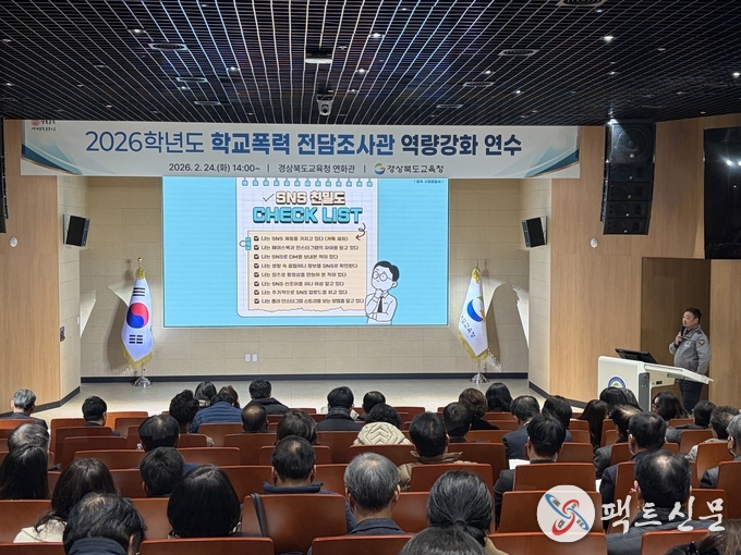 구미경찰서(서장 유오재)는 2월 24일(화) 경북교육청 행복지원동 401호(연화관)에서 도내 교육청 소속 학교폭력 전담조사관 150여명과 지역별 업무 담당자 22명을 대상으로 ‘학교폭력 사안 조사를 위한 스마트 기기 활용법 및 청소년 문화 이해’ 교육을 진행했다.