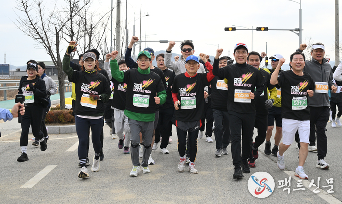 전국 각지에서 모여든 1만 6천여 명의 마라톤 동호인들과 도민들이 운집한 가운데, 이 지사는 5km 코스에 참가해 도민들과 발걸음을 맞추며 현장의 생생한 목소리를 듣는 시간을 가졌다.