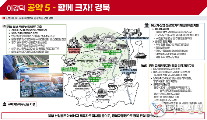 민주당의 이간계로 인해 대구·경북 행정통합법안 통과가 사실상 무산된 가운데 이강덕 국민의힘 경북도지사 예비후보는 2일 경북중흥 5호 공약인 ‘함께 크자! 경북’을 발표했다. 행정통합이 불발됨에 따라 가장 먼저 경북의 새로운 미래를 준비하겠다는 취지다.