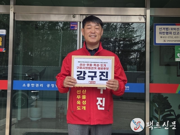 강구진 선산라이온스클럽 회장이 구미시 바선거구(선산·무을·옥성·도개) 시의원 예비후보로 등록하며 본격적인 선거 행보에 나섰다.