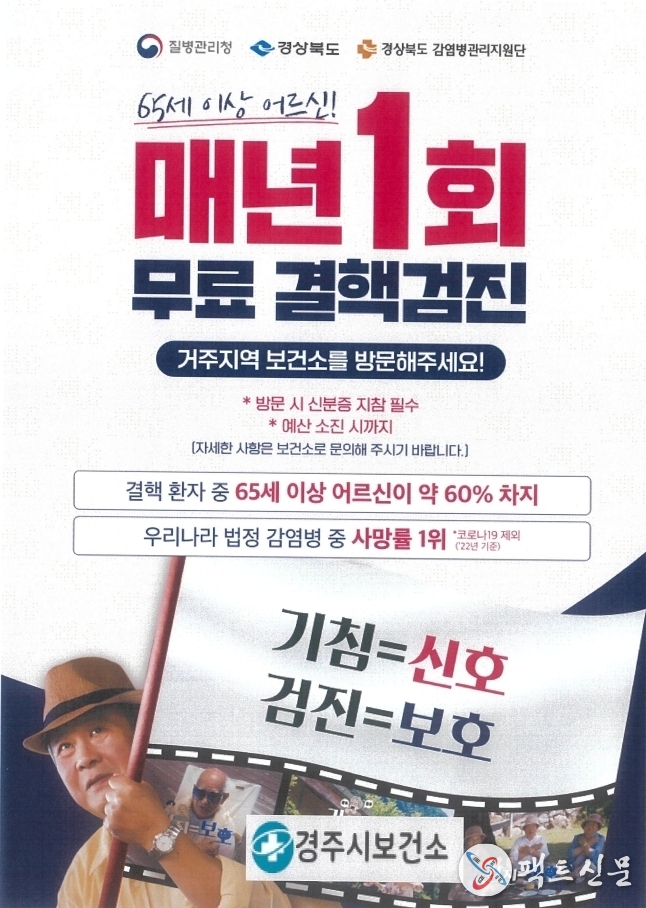 경주시는 읍·면·동 행정복지센터와 버스승강장 전광판을 활용해 결핵 예방수칙과 보건소 결핵검진 안내를 집중 홍보하고, 보건소 홈페이지 팝업 등 온라인 채널을 통해서도 결핵 예방정보를 널리 알릴 계획이다.