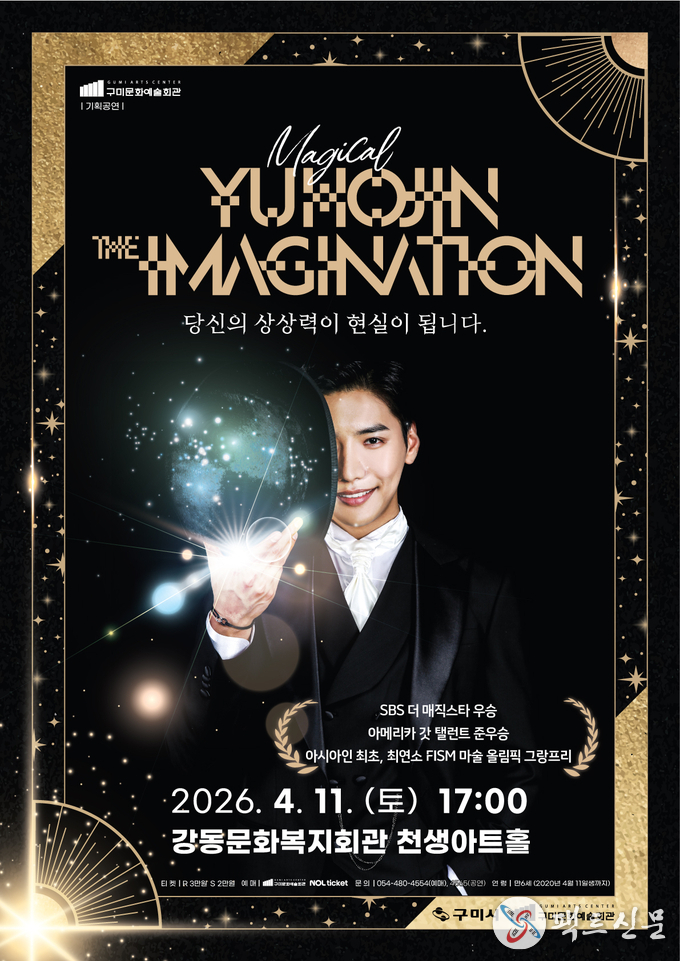 구미시는 오는 11일(토) 오후 5시, 강동문화복지회관 천생아트홀에서 세계적인 마술사 유호진의 단독 공연 <더 이미지네이션(The Imagination)>을 개최한다.