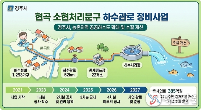 경주시가 농촌지역 공공하수도 확대와 수질 개선을 위해 ‘현곡 소현처리분구 하수관로 정비사업’을 추진하고 있다고 12일 밝혔다.
