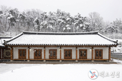 [팩트신문 = 이상혁 기자] 지난 24일 칠곡군에 봄철 눈이 내리면서 향사아트센터 일대가 저녁까지 하얗게 덮였다. 이날 고지대인 한티재에는 최대 13cm의 적설이 기록됐다. 이날 오전부터 내리기 시작한 눈은 오후와 저녁까지 이어졌다. 전통 한옥 양식의 기와지붕과 마당, 주변 수목 위로 눈이 쌓이며 평소와 다른 모습이 연출됐다. 검은 기와 위에 쌓인 눈은 건물의 곡선을 더욱 또렷하게 드러냈다. 향사아트센터는 박귀희 명창의 예술세계를 기리기 위해 조성된 문화시설이다. 박귀희 명창의 호‘향사’를 따 명명됐으며, 전시 공간과 공연장을 갖추고 있다. 봄철 눈이 이어지면서 방문객 수는 평소보다 줄었다. 다만 눈 덮인 전통 건축을 촬영하려는 주민들의 발길은 이어졌다. 시설 관계자는 “미끄럼 사고 예방을 위해 안전 점검을 실시했다”고 밝혔다. 24일 저녁까지 이어진 이번 눈은 향사아트센터에 이례적인 봄 설경을 남겼다.
