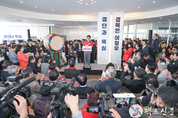 [팩트신문 = 이상혁 기자] 국민의힘 이철우 경북도지사 예비후보가 21일 선거사무소 개소식을 개최하며 본격적인 선거 체제에 들어갔다. 행사에는 송언석 국민의힘 원내대표와 김정재, 임이자, 김형동, 임종득, 조지연, 이달희 국회의원 등 당내 주요 인사들이 참석했다. 이진숙 대구시장 예비후보, 이용구 국민의힘 전 중앙윤리위원장, 양재곤 전 재경대구경북시도민회장, 김용주 현 재경대구경북시도민회장, 이동환 현 재대구경북시도민회장 등도 자리를 함께했다. 이 후보는 ‘결단과 뚝심, 경북은 이철우’라는 슬로건을 내세워 경상북도의 대전환과 보수 정치 기반 수호를 핵심 비전으로 제시했다. 개소식은 이 후보가 직접 애국가 1절을 제창하며 시작했고, 행사 말미에도 애국가 4절을 다시 불렀다. 송언석 원내대표는 “이철우 지사가 지역 발전과 대한민국 성공을 위해 노력했다”며 국민의힘이 이번 계기로 다시 비상하기를 희망한다고 말했다. 김정재 의원은 이 지사의 헌신과 추진력을 언급하며 국민의힘이 다시 활성화할 것을 확신한다고 밝혔다. 임이자 의원은 선대본부장으로서 현장 사전답사를 마쳤다고 전했다. 김형동 의원은 경북 지역의 균형 발전과 북부권 중심 발전 정책에 관심을 부탁했고, 조지연