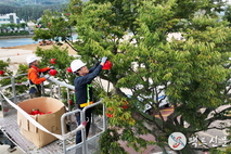 [팩트신문 = 이상혁 기자] ‘산소카페 청송군’이 대한민국에서 가장 수려하고 청정한 자연을 배경으로, 청송사과의 수확철을 맞아 풍성하고 다채로운 “제19회 청송사과축제”를 준비하고 있다. 제19회 청송사과축제는 ‘청송~ 다시 푸르게, 다시 붉게’라는 주제로 오는 10월 29일(수) 청송읍 월막리 용전천(현비암 앞)에서 화려한 막을 올려 11월 2일(일)까지 5일간 개최된다. 개막을 앞두고 윤경희 청송군수가 직접 현장을 챙기며 축제 분위기를 끌어올리고 있다. 군수는 17일 축제장 중앙의 느티나무 앞에서 리프트기에 올라 사과 조형물을 직접 설치하며 축제 준비를 진두지휘했다. 이를 지켜보던 군민들은 군수가 몸소 축제장 조성에 참여하는 모습에 응원의 박수를 보냈다. 이날 윤경희 군수는 조형물 설치를 비롯해 전기·하수·교통 동선 등 기반시설 전반을 꼼꼼히 점검하며 관계자들에게 철저한 준비를 당부했다. 그는 “청송사과축제는 군민 모두가 함께 만들어가는 축제이며, 그 상징성을 생각하면 어느 부분 하나 부족함 없이 완벽하게 준비돼야 한다”며 “방문객들이 만족할 수 있는 축제가 되도록 최선을 다하겠다”고 말했다. 한편, 올해 청송사과축제는 다채로운 공연과 풍성한 체험 프로그